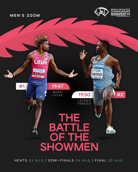 In a recent post by the World Athletics Instagram page, they did a graphic titled 'The Battle of the Showmen' comparing their times as the top two fastest runners this season as a build-up to the men's 200m in Budapest.