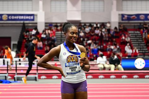 The Nigerian 200m indoor and outdoor record holder needed to go faster than McKenzie Long's 22.67s run in the first semifinal, which she did conveniently to win her first SEC indoor title in the event, after losing to Abby Steiner in the past two seasons.