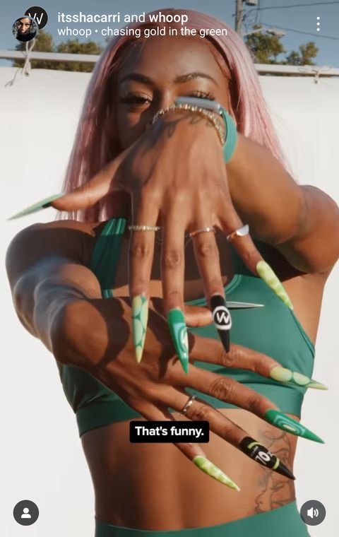 And now the latest that has certified it being a signature trait is her partnership with fitness brand Whoop, painting her nails in the company's colour and using their logo.