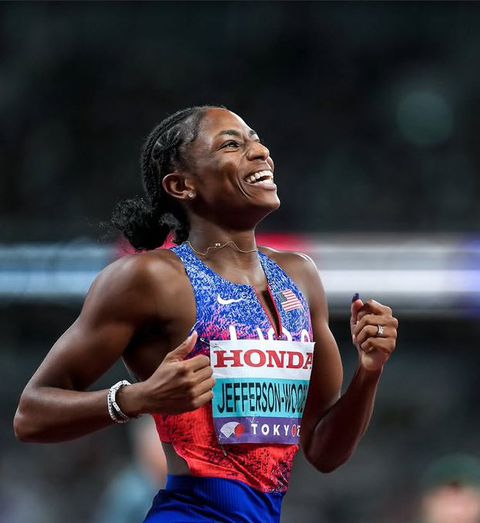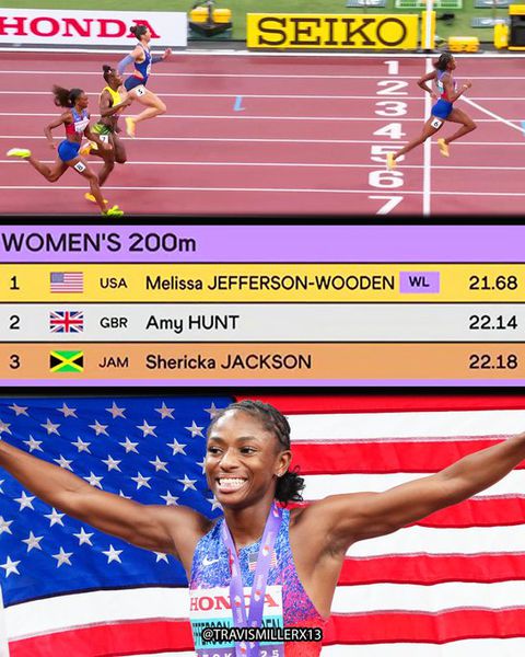 With Jefferson-Wooden's victory, she became the first US woman and only the fourth in history to do the sprint double at a single World Championships.