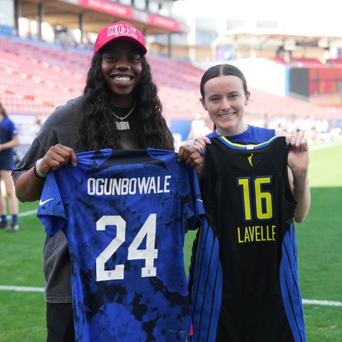She presented a Dallas wings city edition jersey to USWNT midfielder Rose Lavelle. Ogunbowale also received an official USWNT kit from Lavelle.