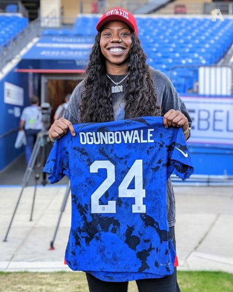 The 25-year-old Ogunbowale teamed up with the USWNT as they are in Texas for the invitational women's football tournament SheBelieves Cup.