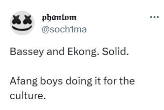 “The way Calvin Bassey take frustrate dem Diakite sha. I thought dem talk say our boys na custard, dem no fit handle heavy duty African player’s aggression????” famous Pidgin commentator, Chief Suo said on X.