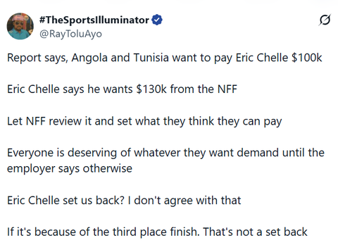 The same voice added a sharp observation about the NFF's own failures in the relationship, "it's also embarrassing to see that the NFF have not provided him a lot of things listed" before concluding that the federation should "take their time and make the right offer" rather than capitulate to the full demand.