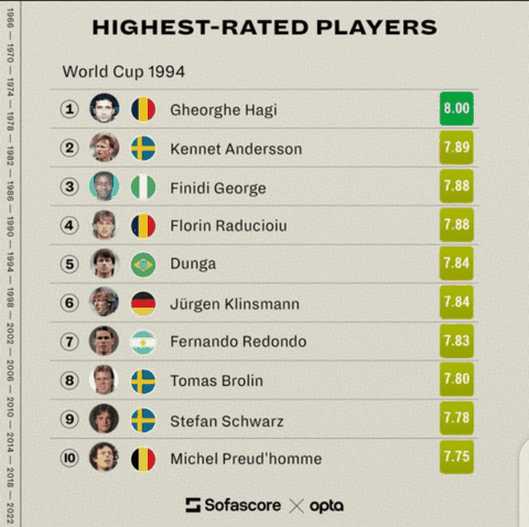Finidi George provided the assist for Rashidi Yekini to score Nigeria’s first-ever World Cup goal and he was also on the scoresheet in the 2-0 win over Greece. Renowned sports data analytic firms Opta and Sofascore rated the ex-Ajax winger as the third-best player at the 1994 edition of the World Cup, where the Super Eagles achieved its highest FIFA ranking ever - placing fifth.