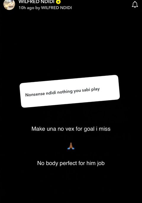 Incensed by the result, the fan messaged Ndidi directly on Snapchat, blasting the 28-year-old with harsh words: “Nonsense Ndidi, nothing you sabi play.”