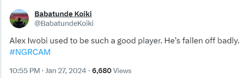 Here are some of the reactions to Iwobi’s outing against the Indomitable Lions at the AFCON 2023.