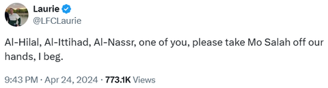 “Al Nassr badly needs Mo Salah on their right wing if they want to stop Al hilal and their referees. Salah is predictable now but over there he's going to feast,” another added.