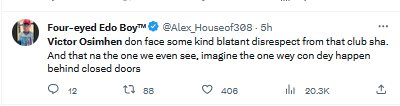 Others stated that they have no business supporting or watching games of a club like Napoli if not because of Victor Osimhen who plies his trade in Naples.