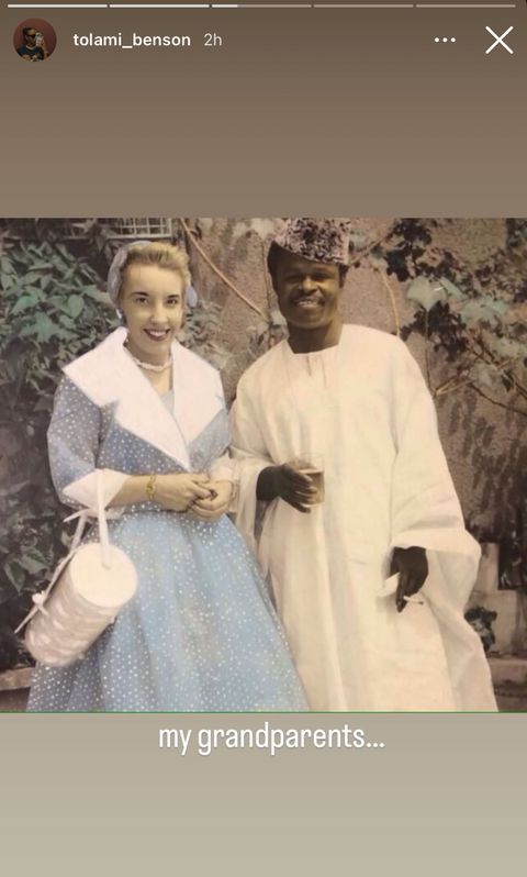 She followed up with another throwback image of her grandparents – a light-skinned woman in a polka-dot dress standing beside a dark-skinned man in traditional attire, simply captioned “my grandparents…”.