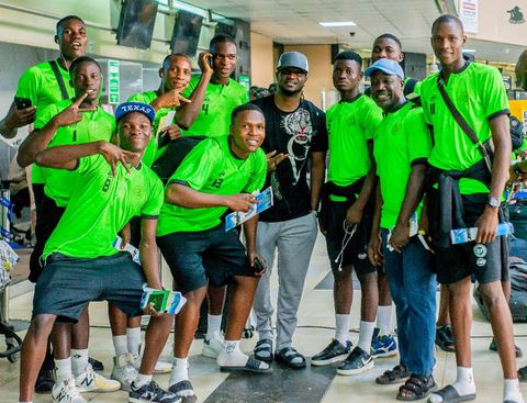 Peter P-Square met the teams ahead of their departure to Congo at the Muritala Muhammed International Airport in Lagos.