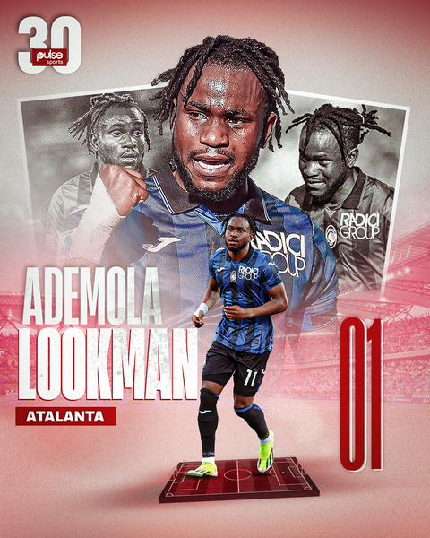 Ademola Lookman had a total of 17 goals and ten assists in 45 appearances this season for Atalanta and takes the top spot on PulseSports30.