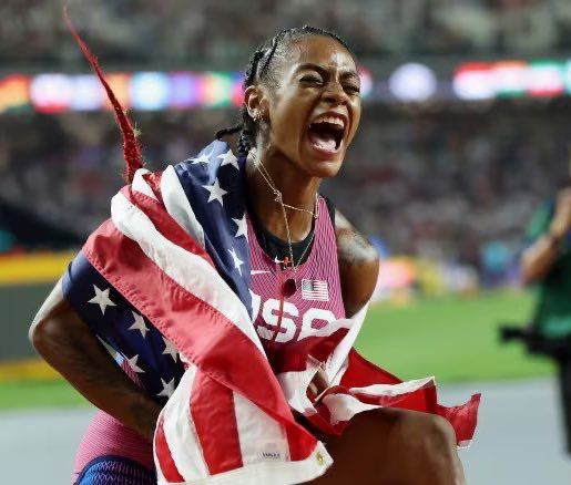 The American speedster ran from lane 9 with lesser pressure, moving past her rivals in the last 30m to cross the finish line as the new World Champion and world's fastest woman.