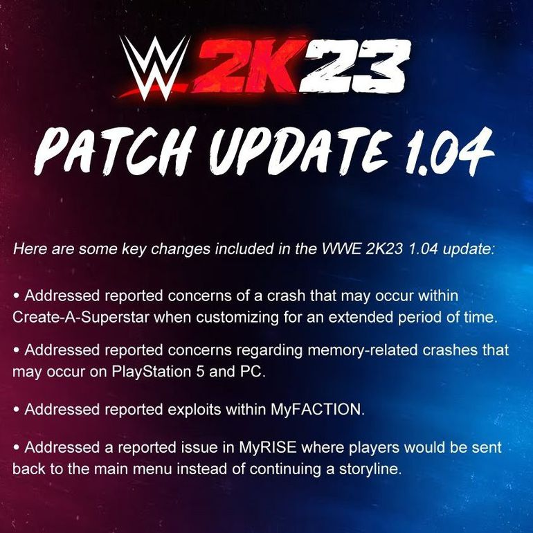 WWE and 2K Games released patch 1.04 for WWE 2K23 on Thursday, March 23.