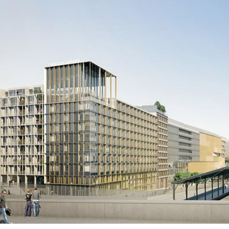 The hotel is a component of the vast Austerlitz A7A8 project, which will also eventually feature a business park, student housing, retail space, and 2,000 bicycle parking spots.