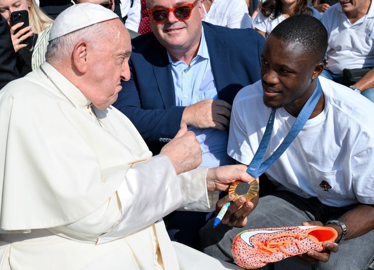 A prayer for my mother: Letsile Tebogo asks for blessings, presents Olympic-winning spikes to Pope Francis in Rome