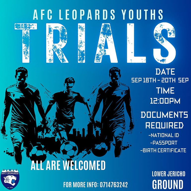 FKF Premier League giants AFC Leopards have opened their doors for aspiring young footballers to attend trials set to take place at the Lower Jericho Ground from Monday 18 to Saturday 23 September.