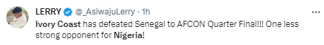 Nigerians react as Ivory Coast eliminates Senegal from AFCON 23