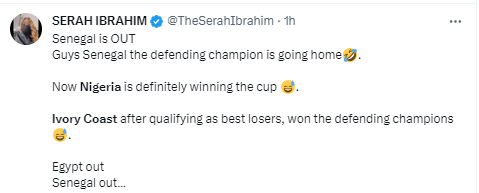 Following Ivory Coast's victory, Nigerians took to social media to s=celebrate Senegal's elimination