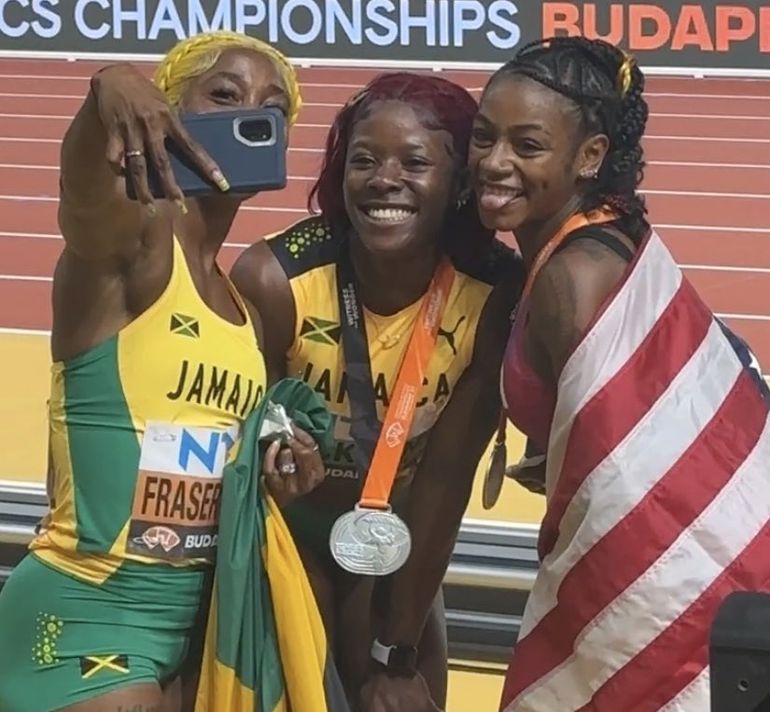 Interestingly, post-race, the three women were hugging, taking picture selfies and viral videos with fans - a rare understanding between Jamaican and American athletes.