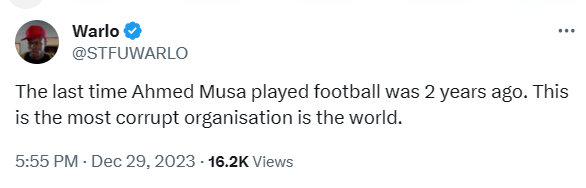 Per the report, former Leicester man, Musa, was the notable inclusion alongside 24 others which also include Enyimba goalkeeper Olorunleke Ojo.
