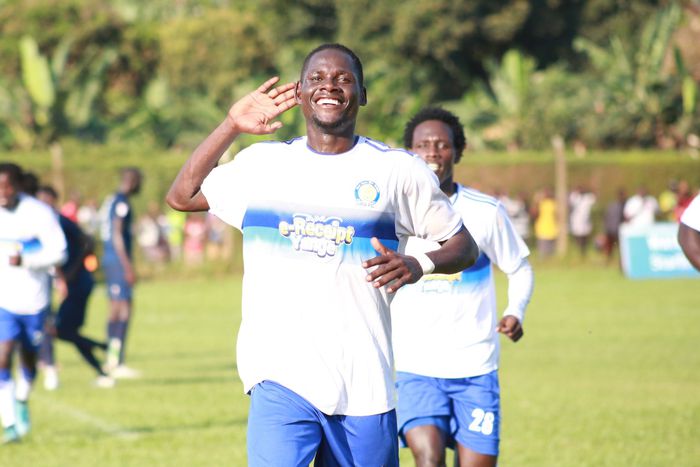 Moses Aliro celebrates one of his goals during their 2-1 victory over Bright Stars in the FUFA Super 8 tournament | Photo Credit: URA FC Media