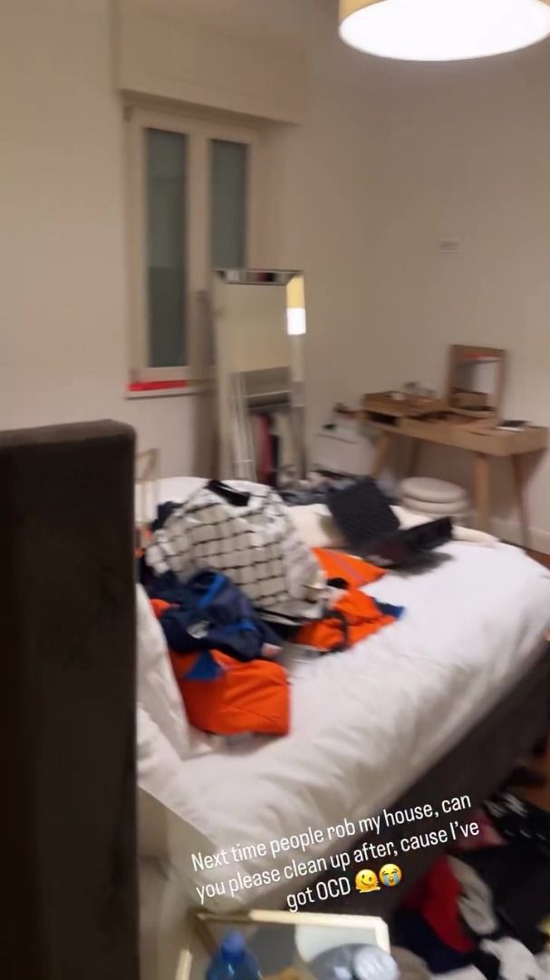 The clip revealed clothes and personal belongings strewn across the floor after thieves had rummaged through her possessions.