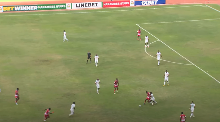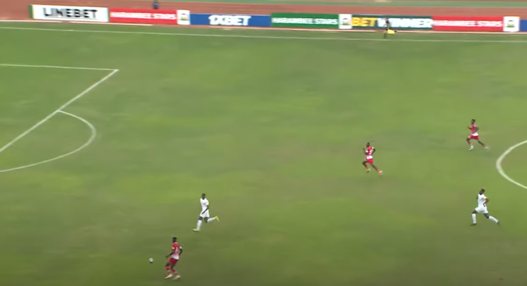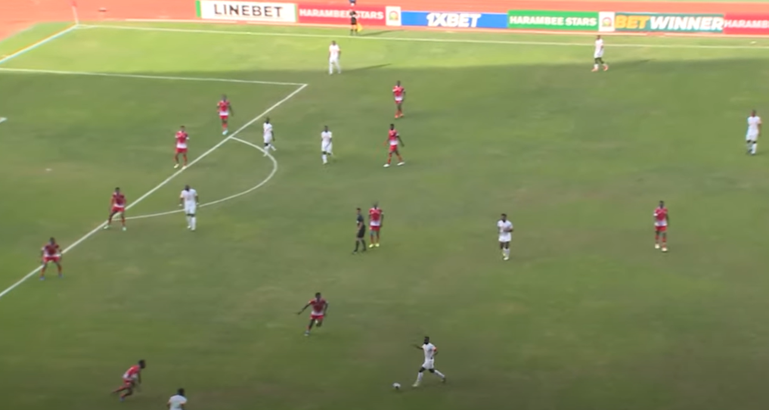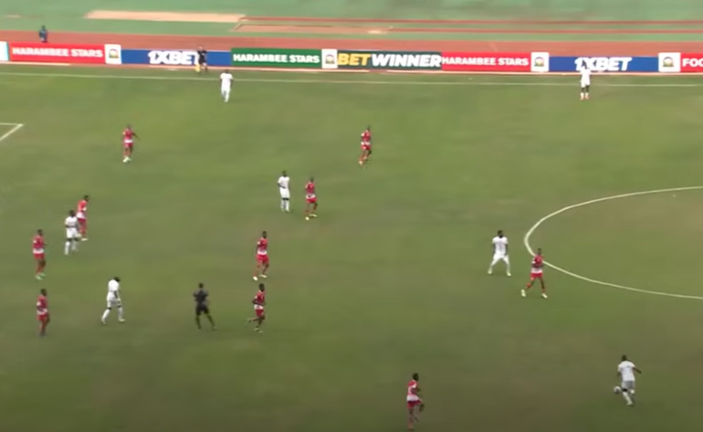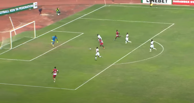 Odada managed to win the ball back and pass it towards the captain, but the goal was protected by the time he was preparing a shot. However, there is a feeling that the wingbacks (Omar and Onyango) should also have bombed forward to offer support by overcrowding the box.