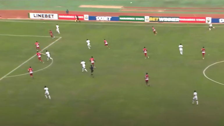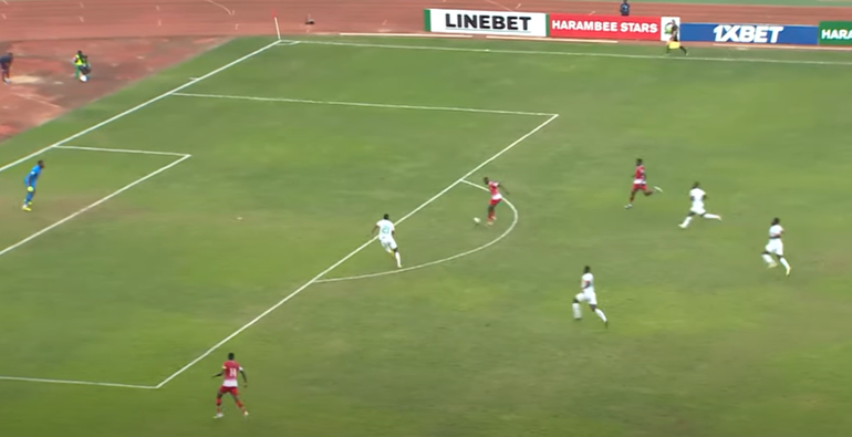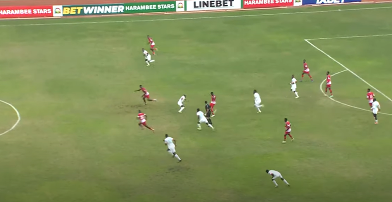 There is another moment just before the break where Timothy Ouma broke free on the counter attack but failed to spot Olunga on the other side who was preparing to run in behind