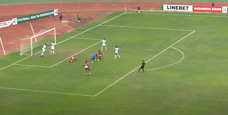 The biggest chance for Kenya came midway through the second half from another quick counter-attacking situation that saw Olunga, Ouma and Odada bomb forwards to offer him support.