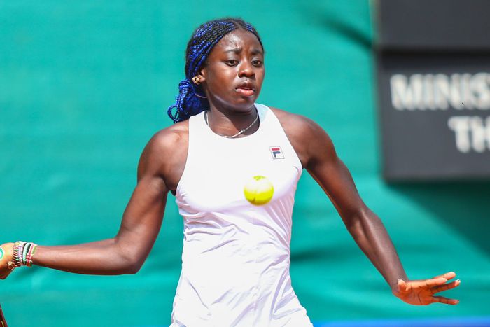 Angella Okutoyi, a rising star in Kenyan tennis, displayed her exceptional talent by defeating Sasha Natalie of Zimbabwe in the opening singles match with a score of 6-3, 6-4.