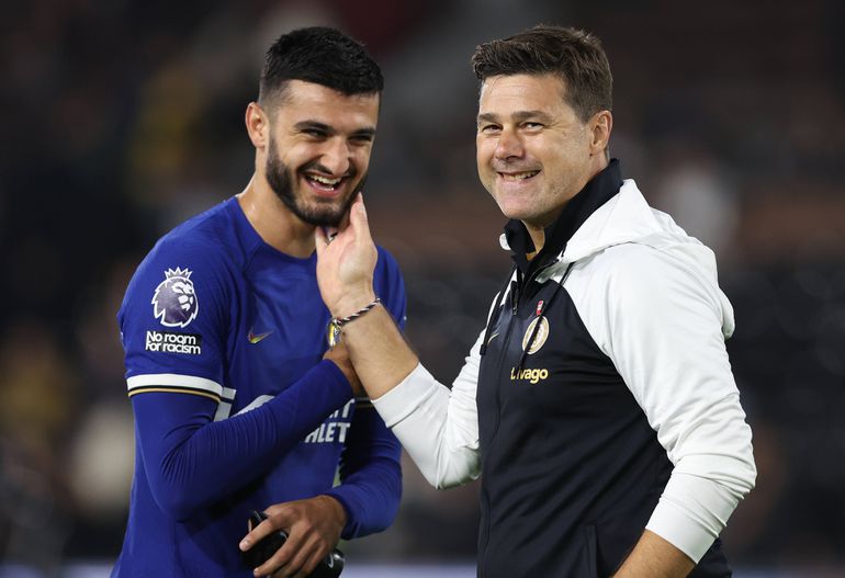 Pochettino and Armando Broja after Fulham vs Chelsea || Image credit: Imago