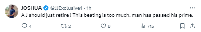 Boxing fans believe Joshua has done the best he can and is now past his best.