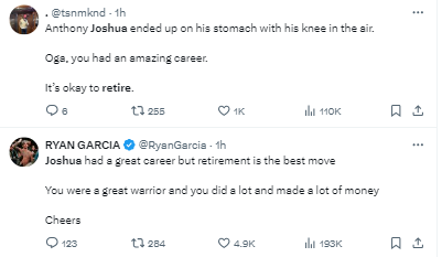 After the fight, Joshua gave credit to Dubois and vowed to continue as a boxer.