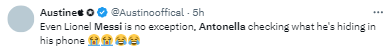 Antonela side-eyes Messi holding phone