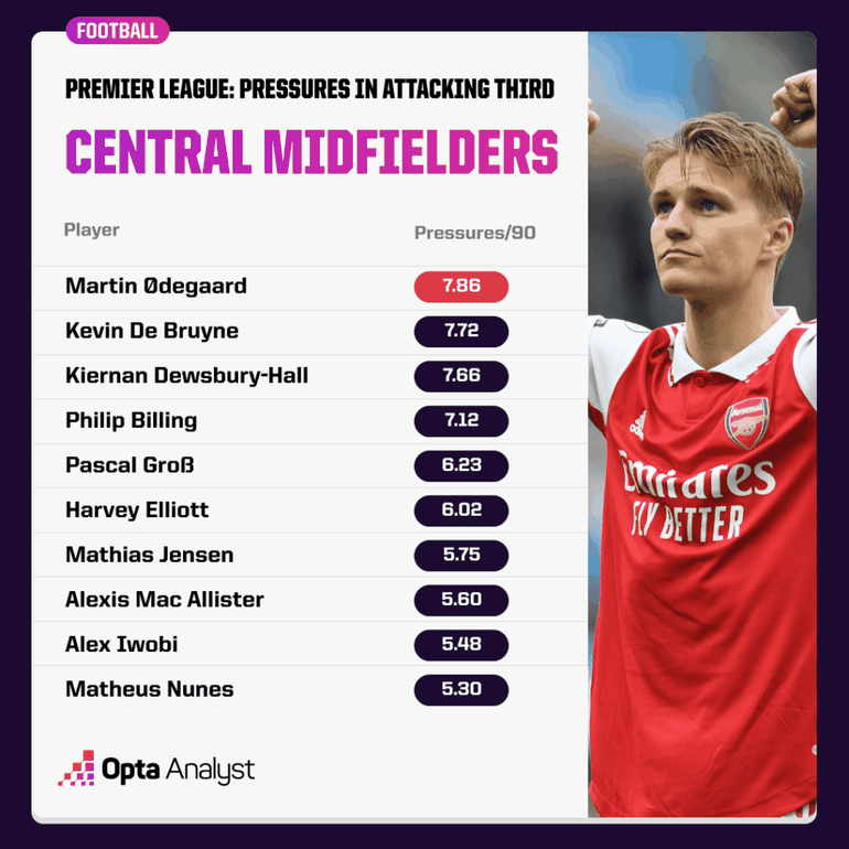 The Gunners sit third in the number of passes; only Manchester City (23,138) and Liverpool (21,797) have amassed more passes than the 19,987 Arsenal have so far.