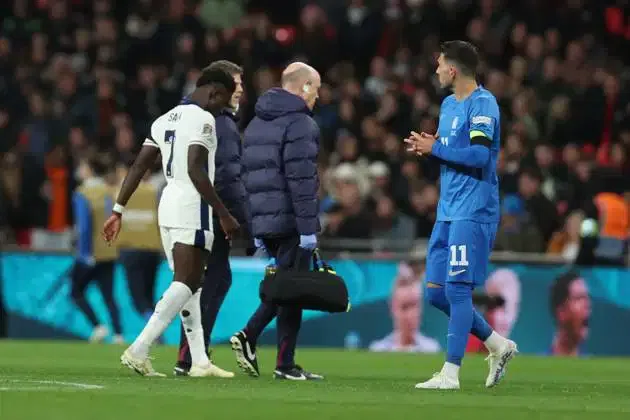 Star forward Bukayo Saka was taken off injured as England fell to a shock 2-1 defeat to Greece, leaving Arsenal in a precarious situation as their Premier League title challenge hits a huge snag.