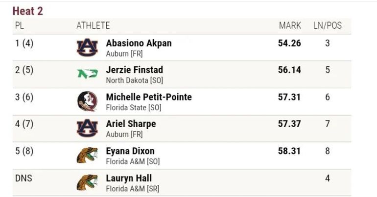 Abasiano Akpan was not left out of the PB performances as she raced to an impressive time of 54.26s to win her 400m heat which was the fourth fastest overall.