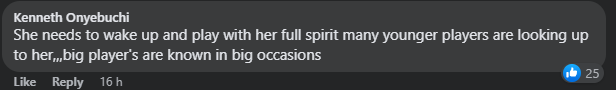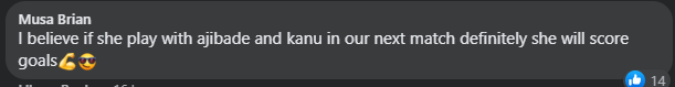 “I believe if she plays with Ajibade and Kanu in our next match, definitely she will score goals,” another firm believer concluded.