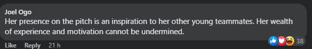 “When was the last time she had a shot on goal in a real match for Nigeria?” another quizzed.