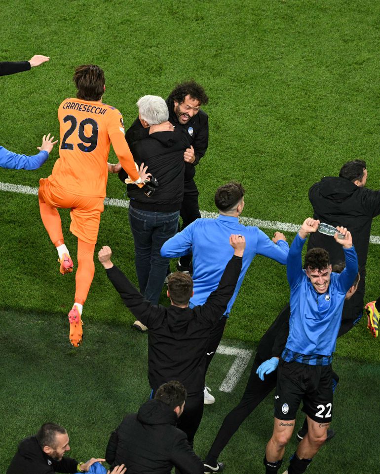 The Atalanta players were quick to celebrate their hero, Lookman, for his heroics on the night.