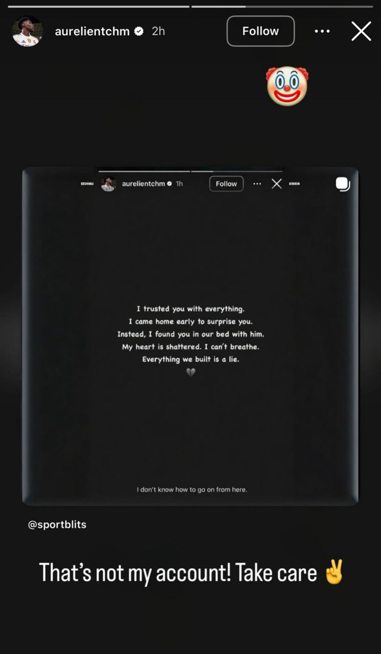 Tchouaméni, however, wasted no time in addressing the hoax directly on his Instagram account, debunking the impersonating post that purported to be from him. In a swift and composed reply, he stated: "That's not my account! Take care ," accompanied by a clown emoji to highlight the ridiculousness of the rumour.