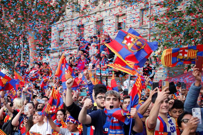 Defender Ronald Araujo was draped in a Uruguayan flag, while La Liga's top scorer Robert Lewandowski, who was wearing sunglasses and a Barcelona scarf, waved to fans.