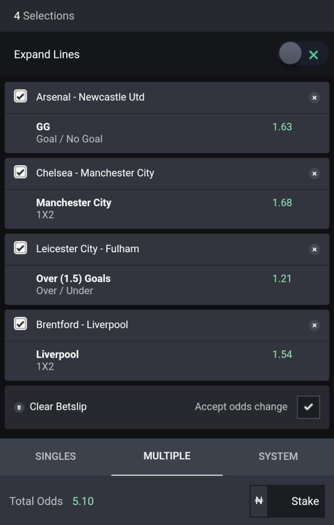 Total odds on Bet9ja: 5.10 odds