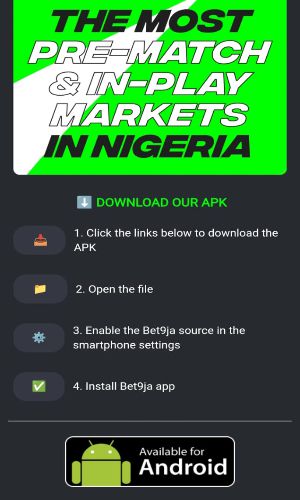 Apart from using the website, you can also use the official Bet9ja app to place bets, check live scores and manage your account on quick notice. Whether you are an Android user or iOS, the app is available for you to download.