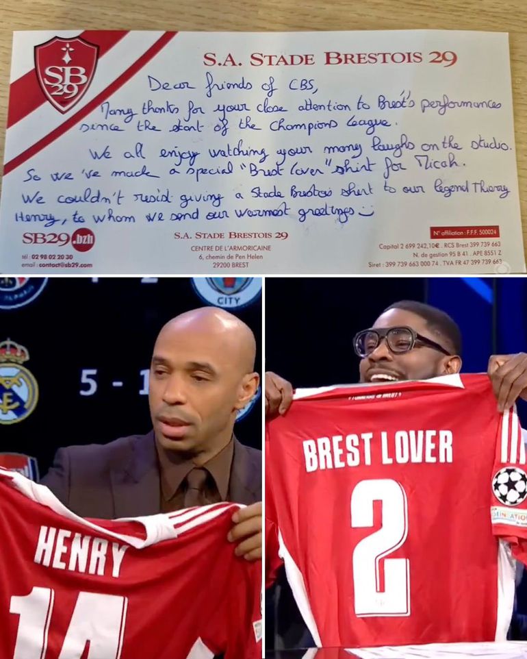 Brest Lover - Micah Richards and Thierry Henry jersey gifts go viral on Champions League coverage