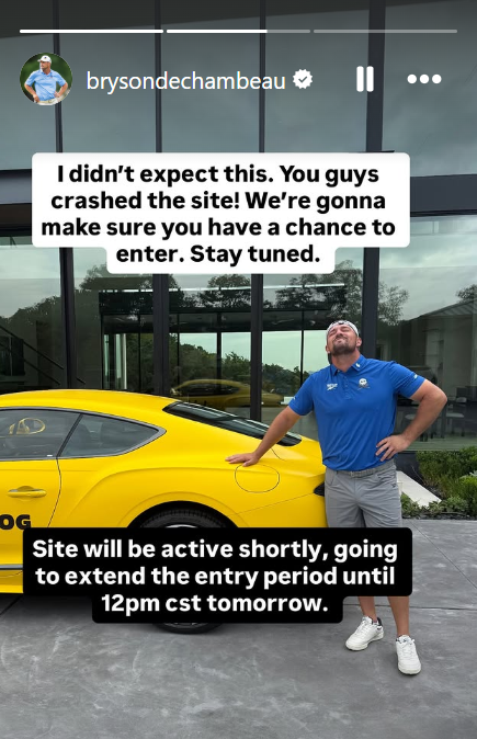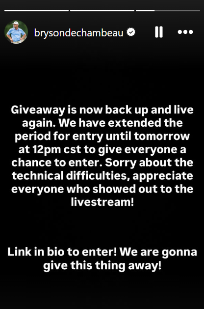 True to his word, DeChambeau extended the entry deadline by 24 hours and assured supporters the giveaway was back online later in the day.