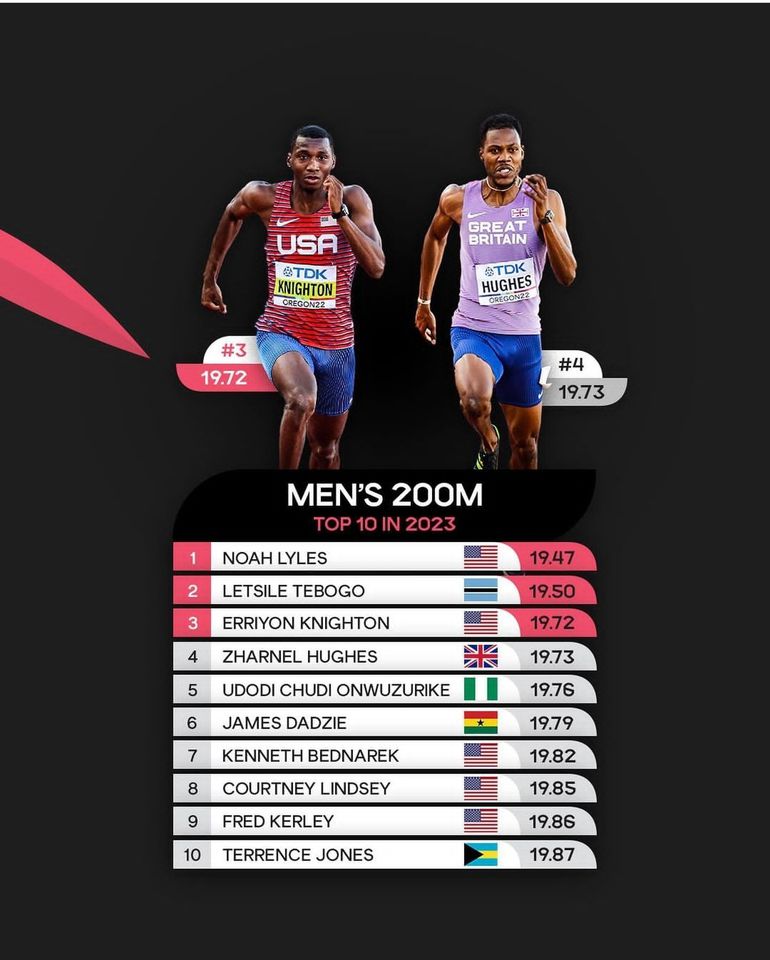 With Lyles already talking tough ahead of the World Championships, the men's 200m event is expected to be a firecracker as the top three positions aren't guaranteed and there's a high probability of Usain Bolt's World Record of 19.19s going down.