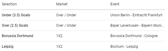 Our tickets include Leipzig, Borussia Dortmund, Union Berlin and Bayern Munich respectively.
