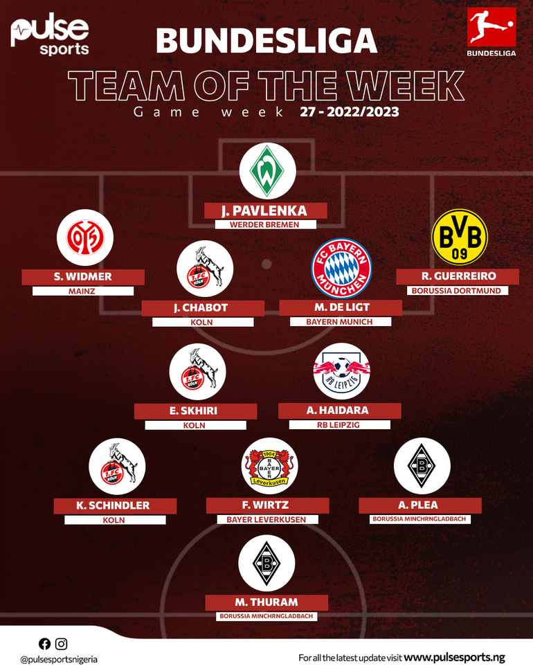Team of Week 27: Artistic Wirtz, commanding De Ligt, Haidara, Skhiri excel